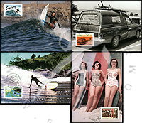 澳大利亚冲浪运动,关于冲浪运动的照片及绘画不干胶自贴票摄影极限片4全(我社已售缺)