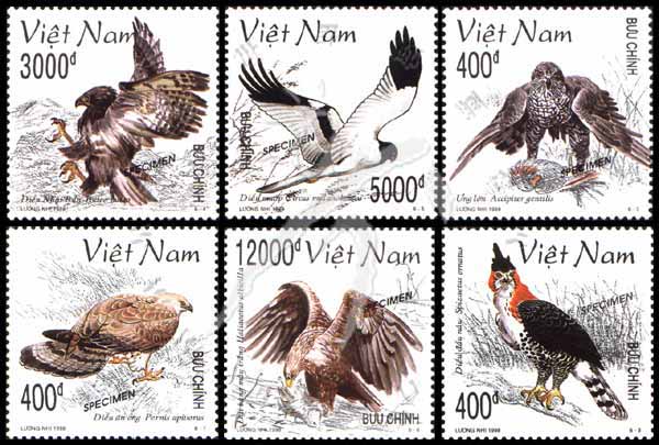 猛禽,鹃头蜂鹰、饰冠鹰雕、苍鹰、普通鵟及白尾海雕等样票6全