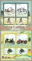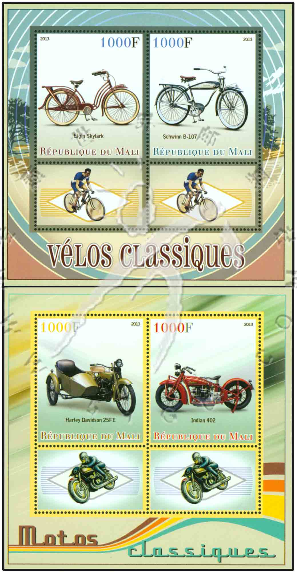 交通工具,施文B-107型号自行车及哈雷摩托车等2枚小全张(各2票+2枚附票)