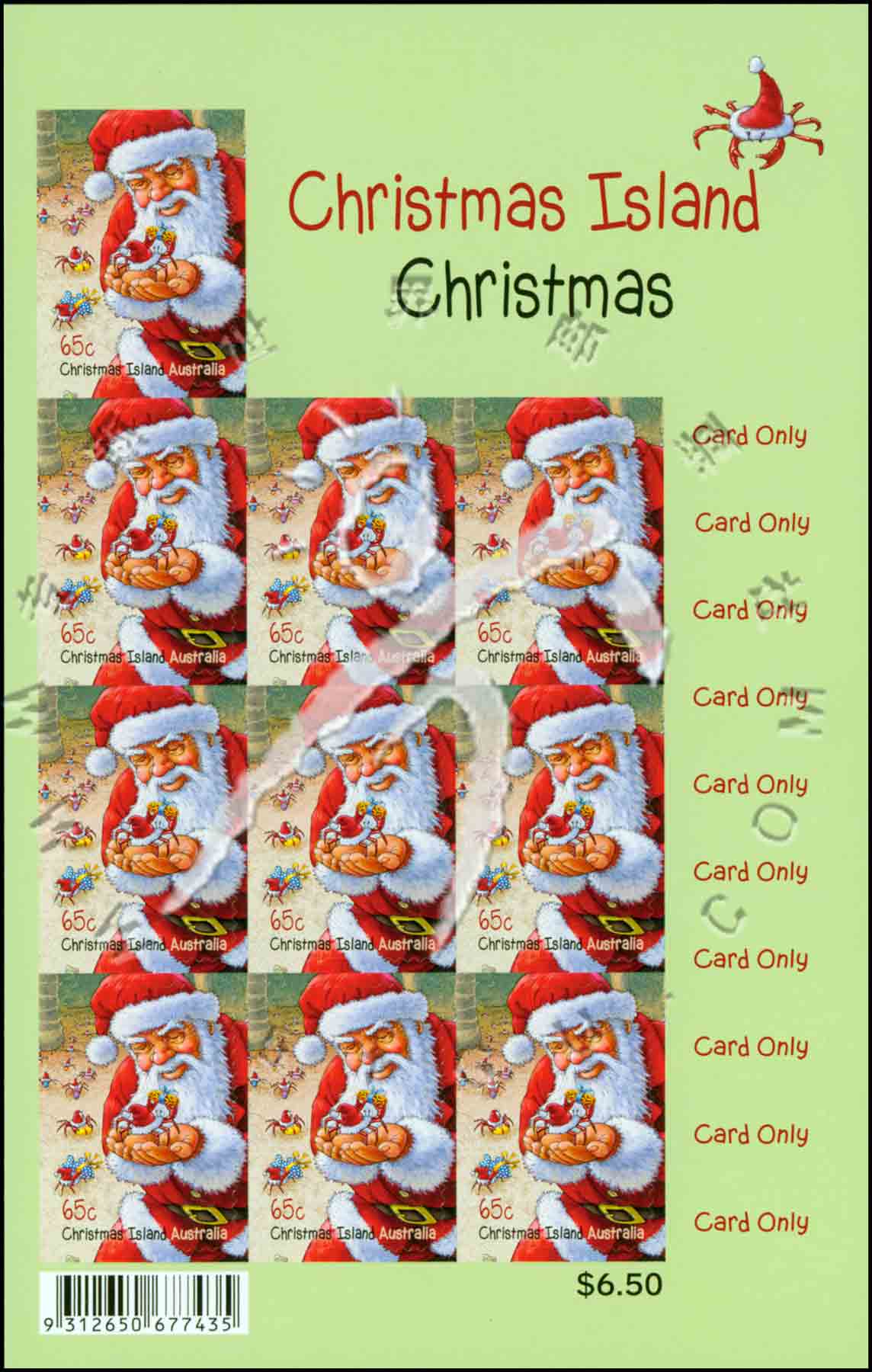 圣诞节,圣诞老人及送礼物的螃蟹不干胶自贴小版张(10票)