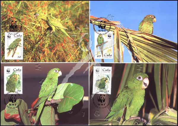 鸟类,古巴长尾小鹦鹉及WWF野生动物基金会徽志摄影极限片4全