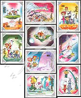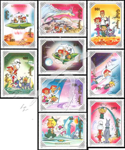 卡通电影《杰特逊》,乘飞艇、在星球上、珍妮和阿恩特罗、朱迪和艾尔洛伊、乘飞艇、朱迪和斯培恩利先生、身着宇航服、艾尔洛伊及红花9全