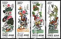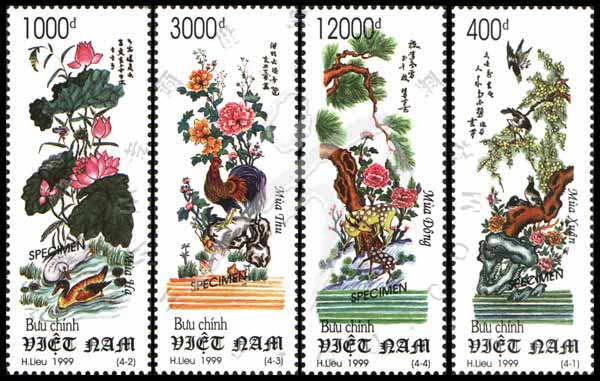 绘画,国画春、夏、秋、冬花卉及鸟等样票4全