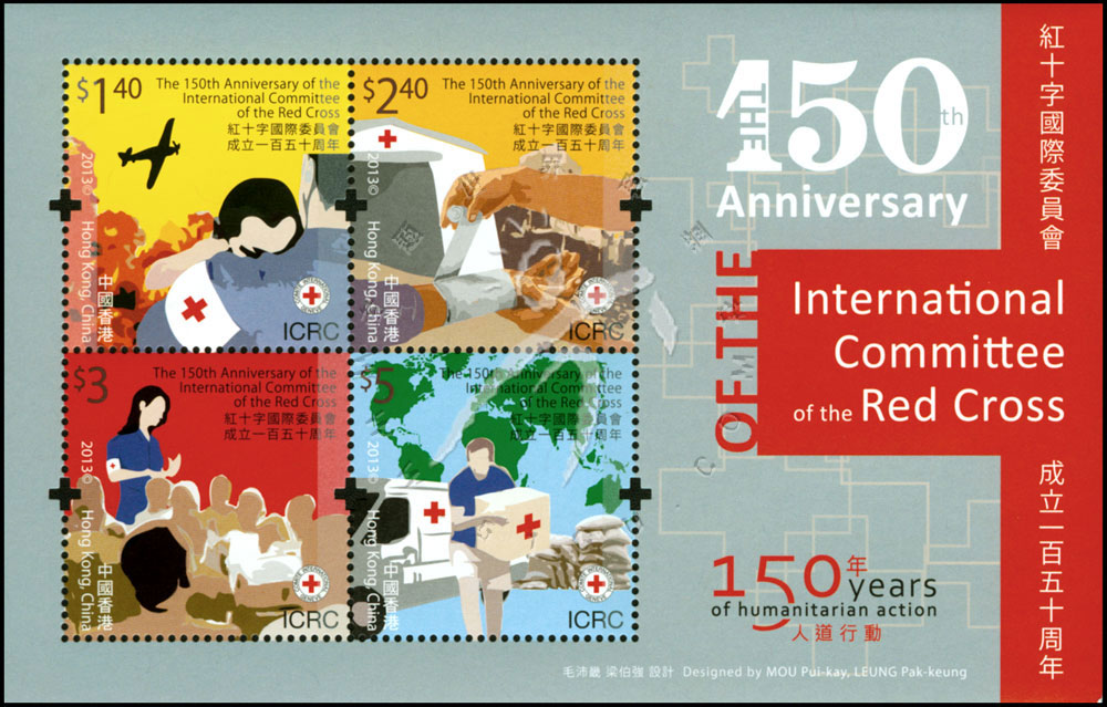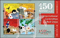 红十字会国际委员会成立150周年,保护、援助、合作及预防工作带十字齿孔小全张(4票)
