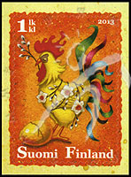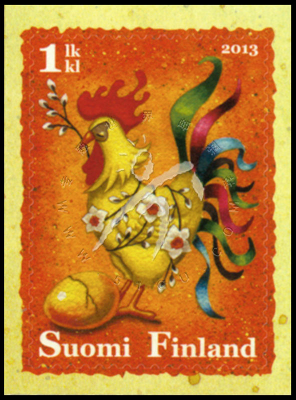 复活节,绘画公鸡及鸡蛋不干胶自贴票1全