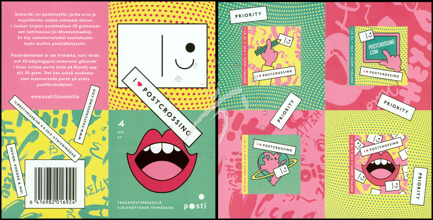 全球明信片互寄交流项目—Postcrossing,交流网站等卡通艺术设计不干胶自贴小本票(4票)