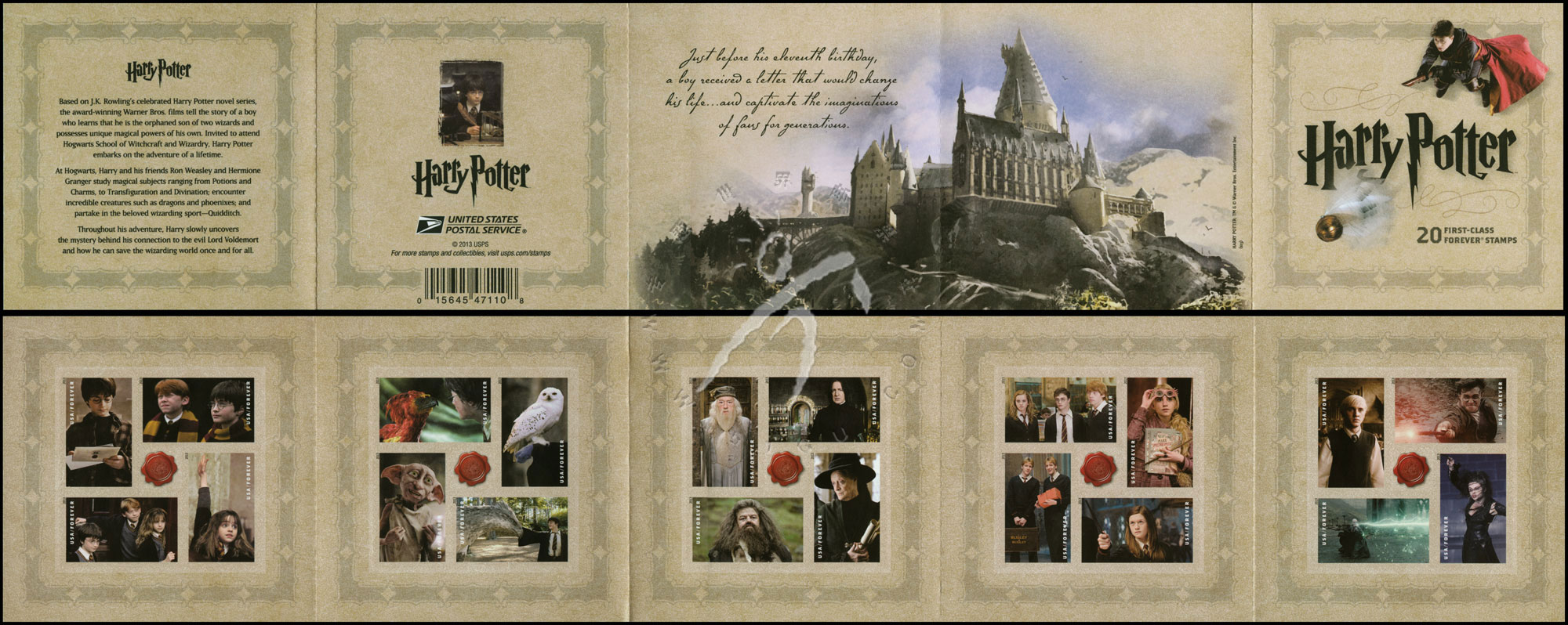 电影《哈利·波特》,电影角色主人公哈利·波特以及他的伙伴赫敏及哈利·波特的猫头鹰“海德薇”不干胶自贴小本票(20票)