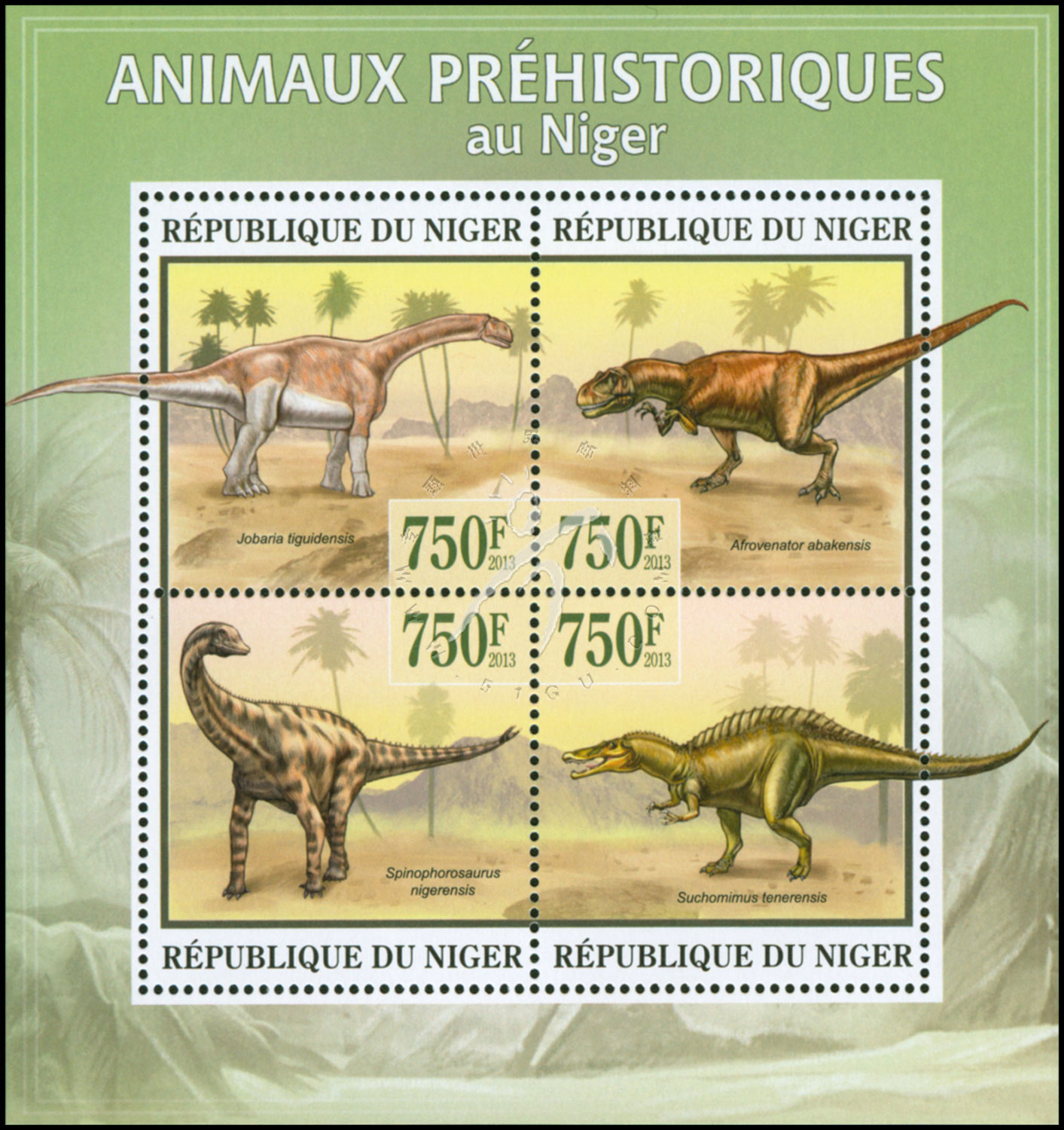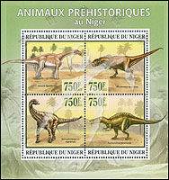 恐龙,泰鸠敦龙、非洲猎龙、尼日棘刺龙及似鳄龙小全张(4票)