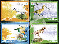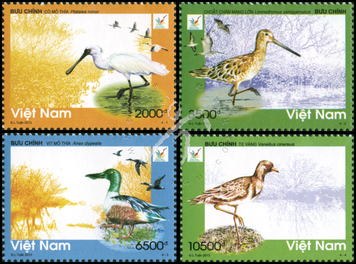 越南春水国家公园的鸟类,黑脸琵鹭、半蹼鹬、灰头麦鸡及琵嘴鸭4全