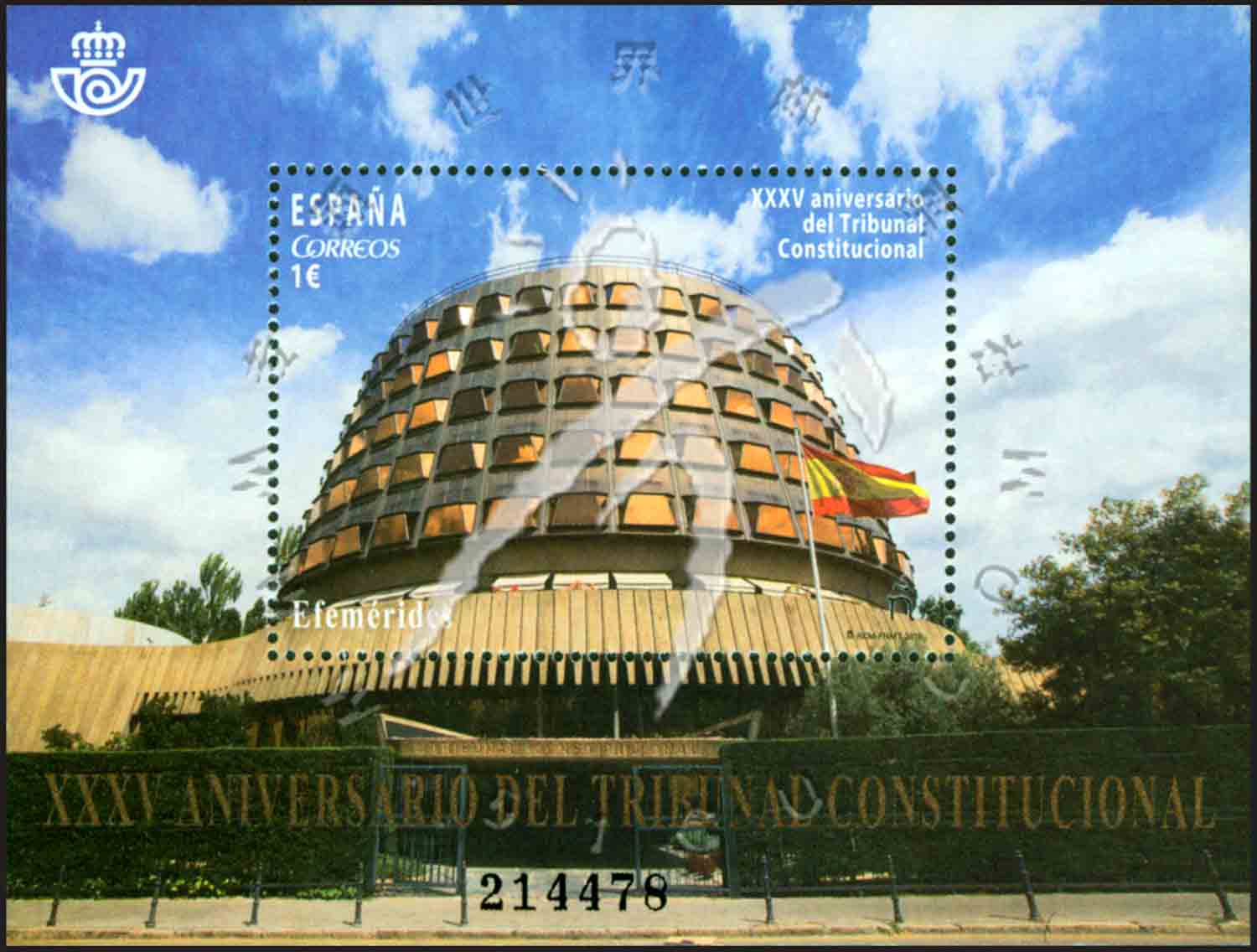 西班牙宪法法院建立35周年,位于马德里的法院总部小型张