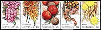 原住民食物,史密斯氏番樱桃(食果)、银桦树(食花)、澳大利亚檀香果(食果)、相思果(食种)及孟农(食块茎)5联(我社已售缺)
