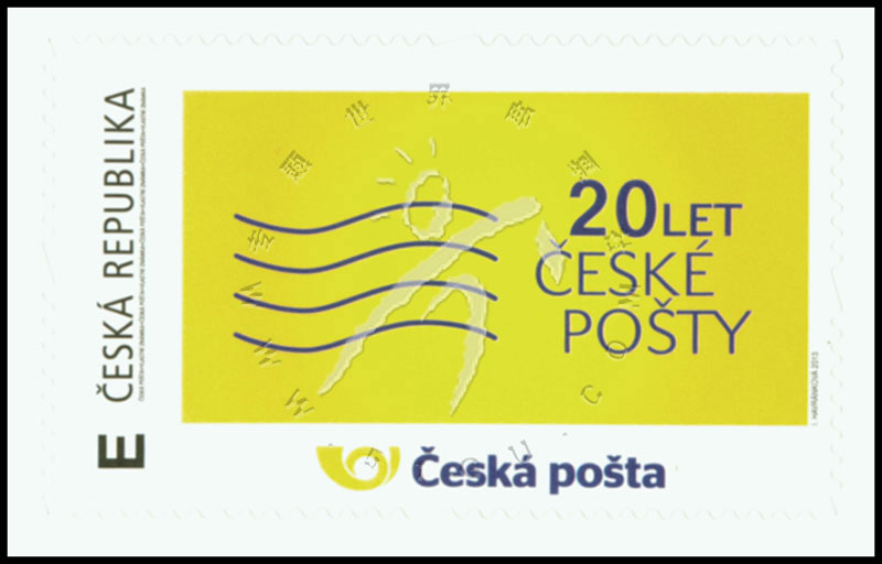 捷克邮政20周年,邮政号角及数字20等不干胶自贴票1全
