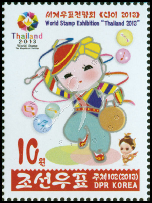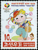 曼谷2013世界邮展,展徽及跳朝鲜传统舞蹈的儿童1全