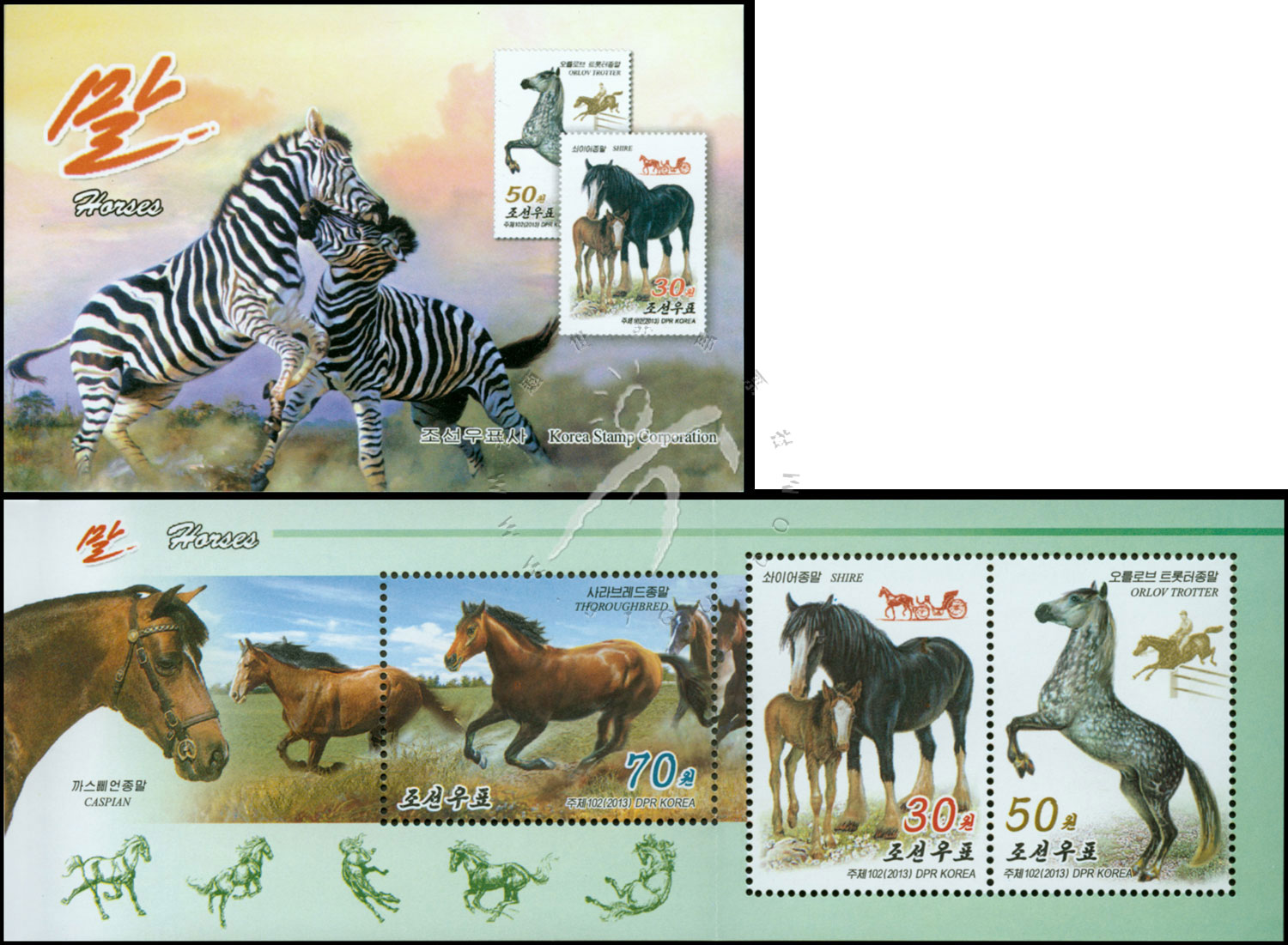 动物—马,夏尔马、奥尔洛夫快步马及纯血马小本票(3票)