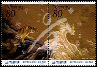 日本集邮周,绘画《龙虎图》2联(我社已售缺)