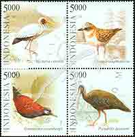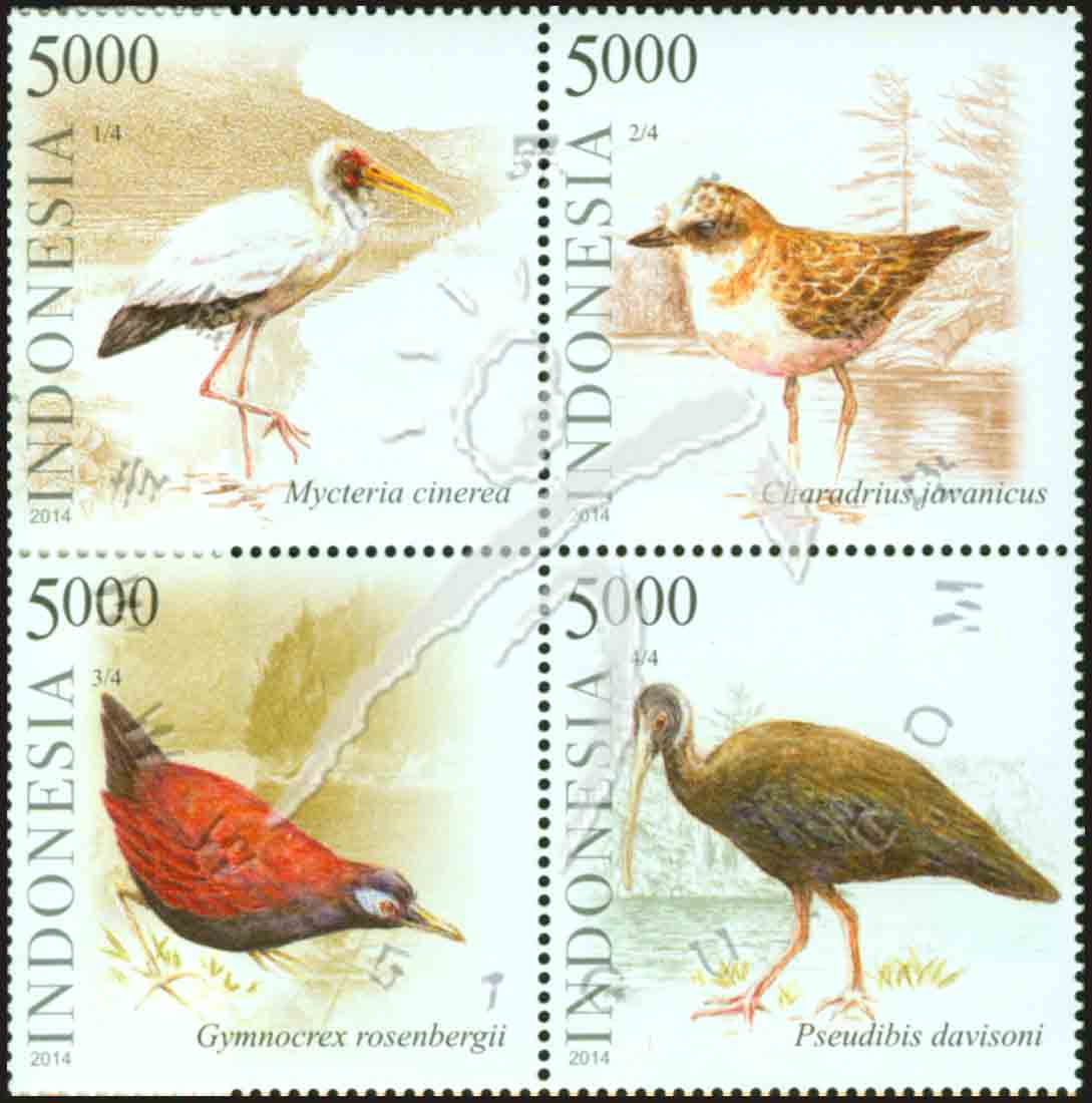 鸟类,灰鹮鹳、爪哇鸻、裸脸秧鸡及白肩黑鹮4联