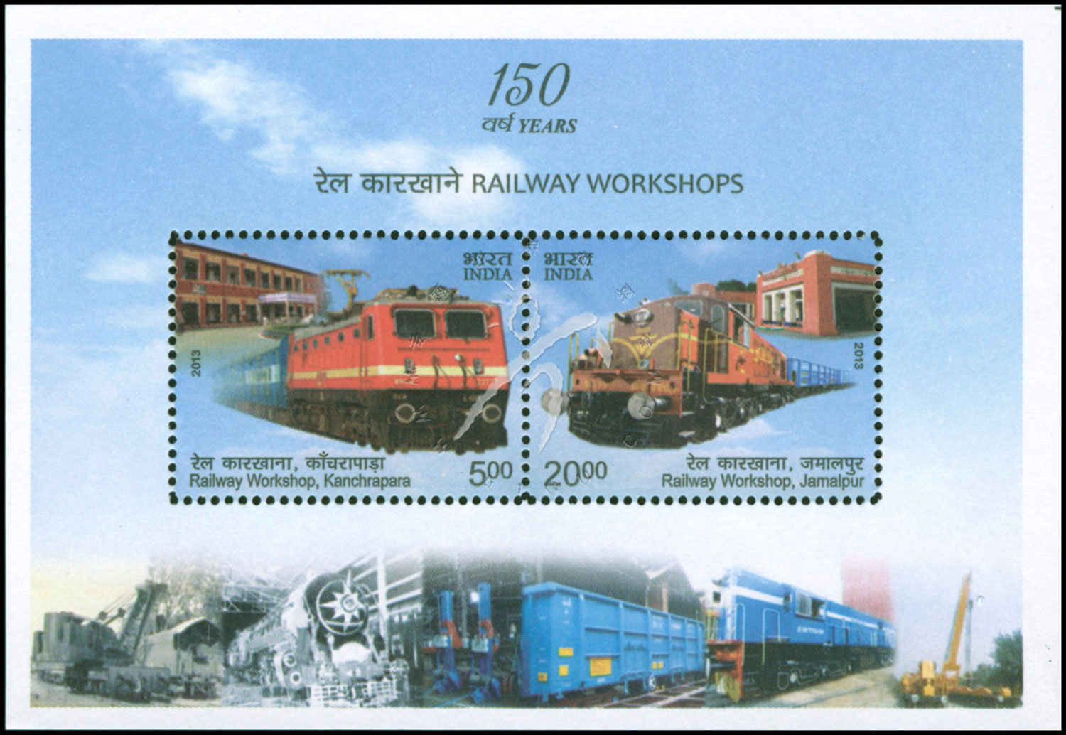 坎奇拉帕拉镇和贾马勒布尔镇的火车修理厂,火车厂房小全张(2票)