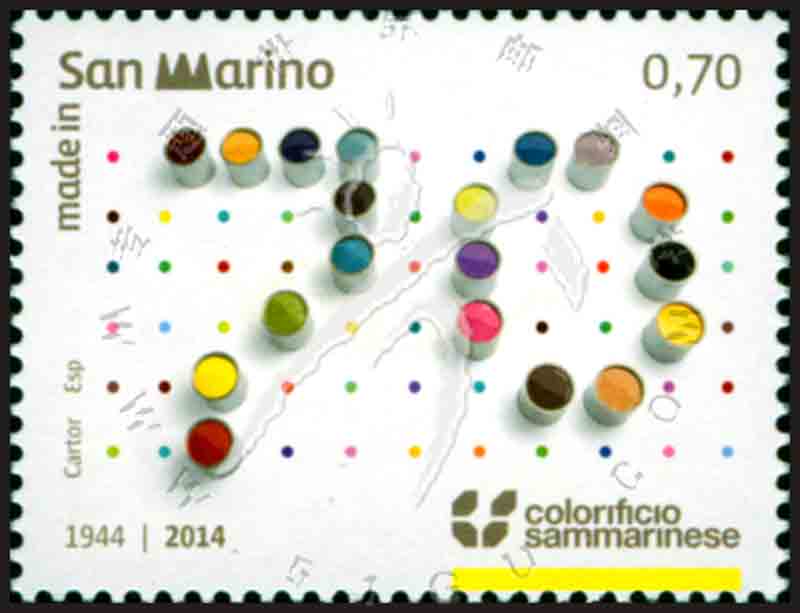 圣马力诺名品系列—意彩油漆公司成立70周年,彩色油漆组成的数字“70”1全