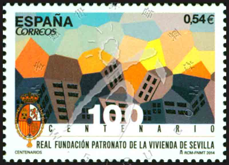 邮票介绍:塞维利亚房屋局成立百年,徽志及房屋1全