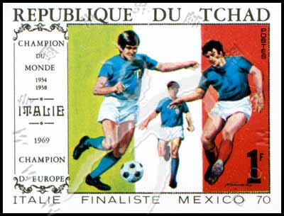 Sc#227A 墨西哥世界杯,意大利球员与国旗无齿票1f 1枚