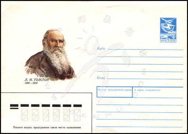 作家列夫·托尔斯泰(1828-1910)诞生160周年,肖像邮资封1全