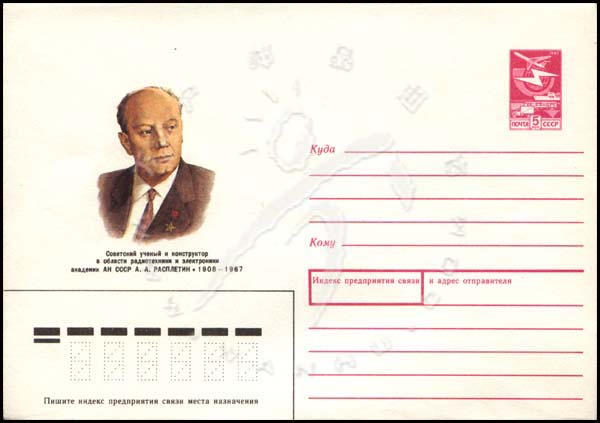 苏无线电领域专家拉斯普列金(1908-1967)诞生80周年,肖像邮资封1全