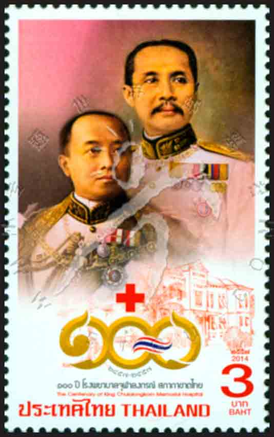 朱拉隆功国家纪念医院百年,朱拉隆功国王肖像、红十字及医院大楼1全