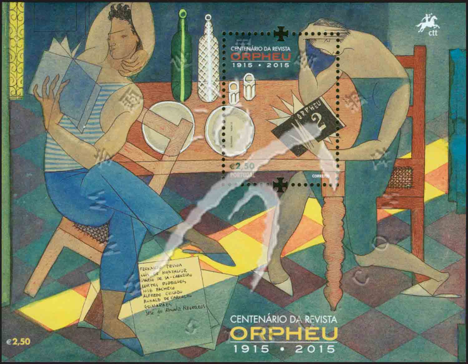葡萄牙《奥尔弗斯》杂志创办百年,阅读杂志的男女青年小型张