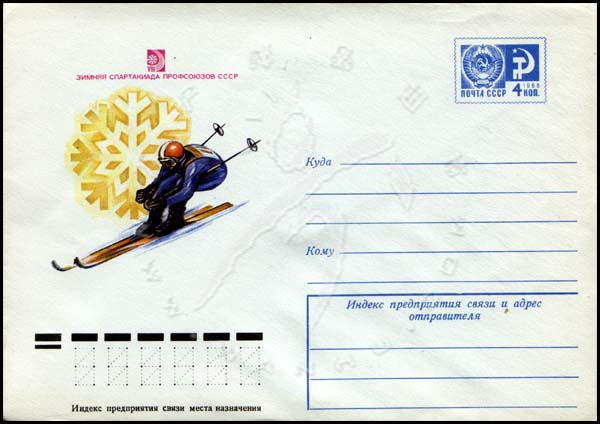 第八届全苏工会运动会,高山滑雪邮资封1F