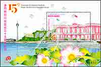 澳门特别行政区成立15周年,政府工作大楼小型张
