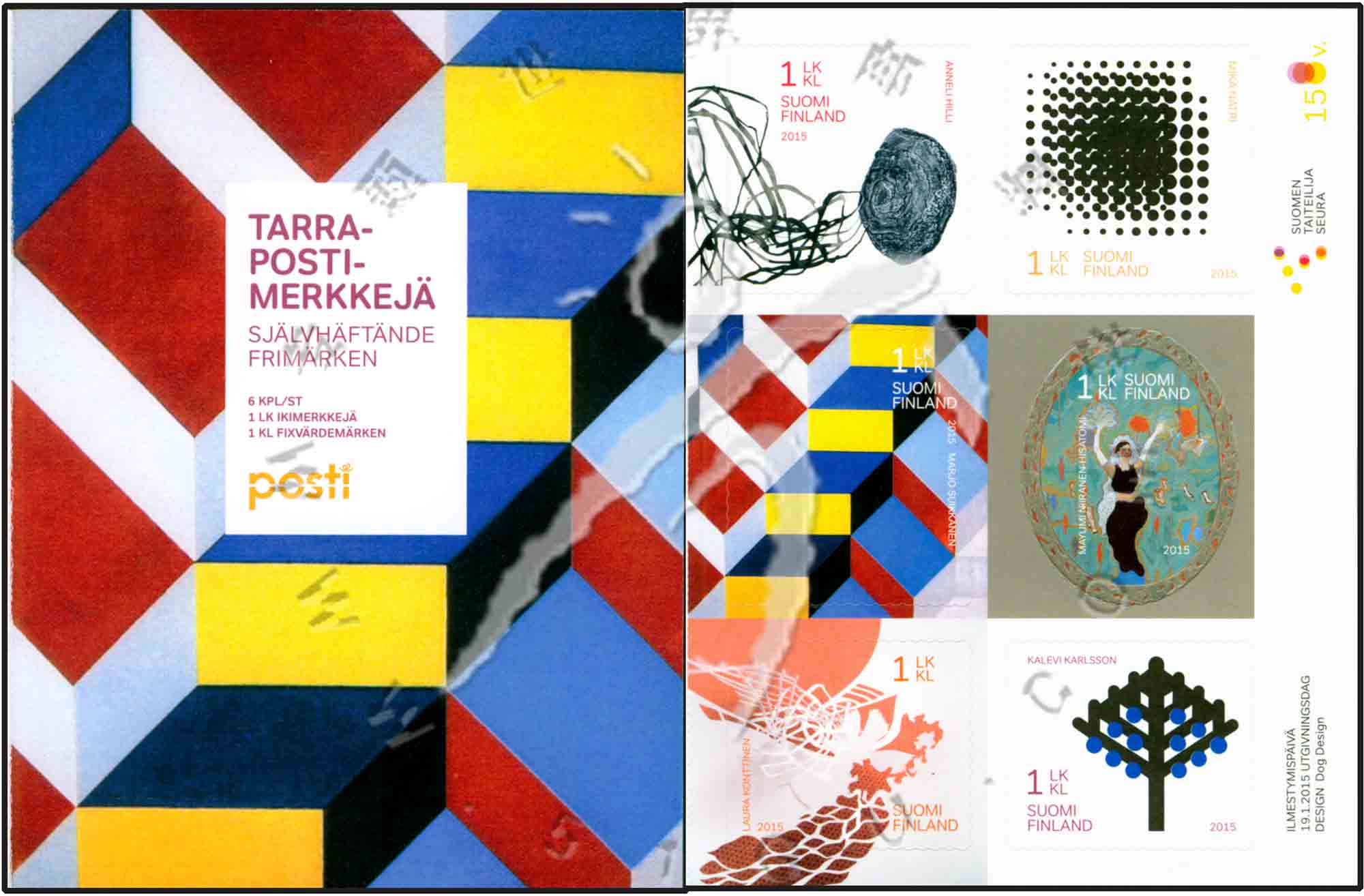 视觉艺术作品,芬兰邮票发行150周年纪念活动中获奖的6幅艺术作品不干胶自贴小本票(6票)