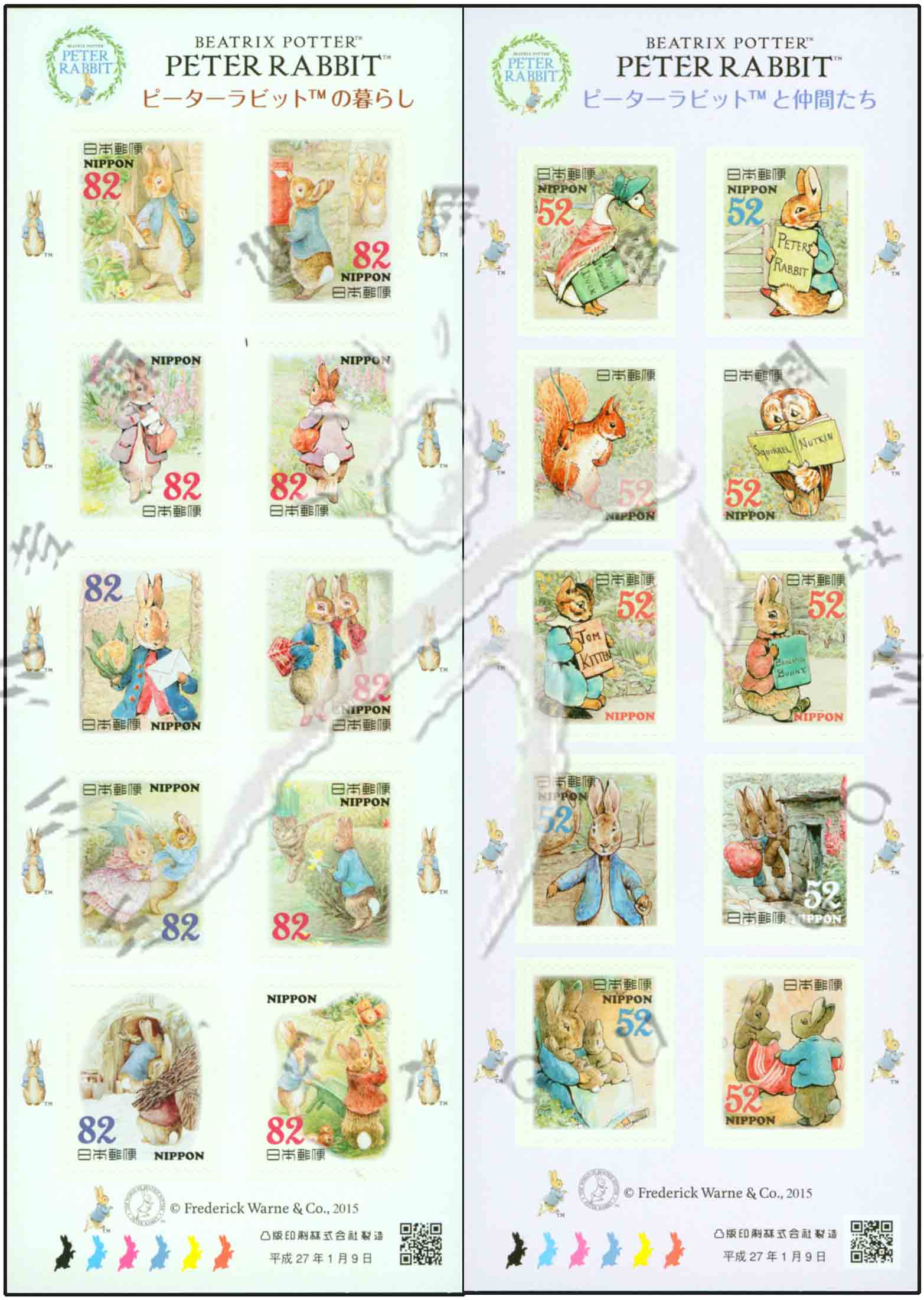 童话《彼得兔的故事》,彼得兔及松鼠等2枚不干胶自贴小版张(各10票)
