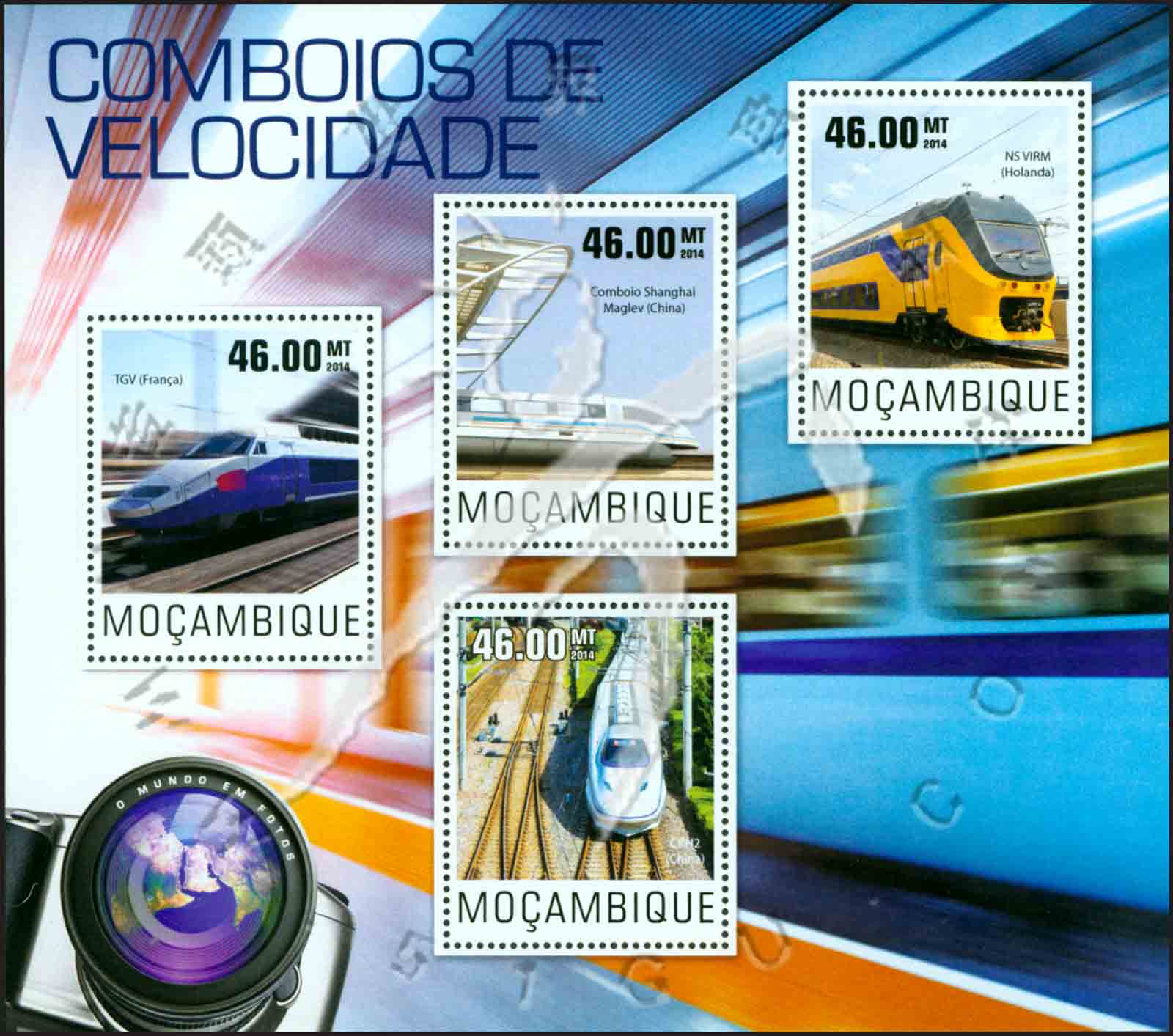 高速列车,法国、中国及玻利维亚国家的高速列车小全张(4票)