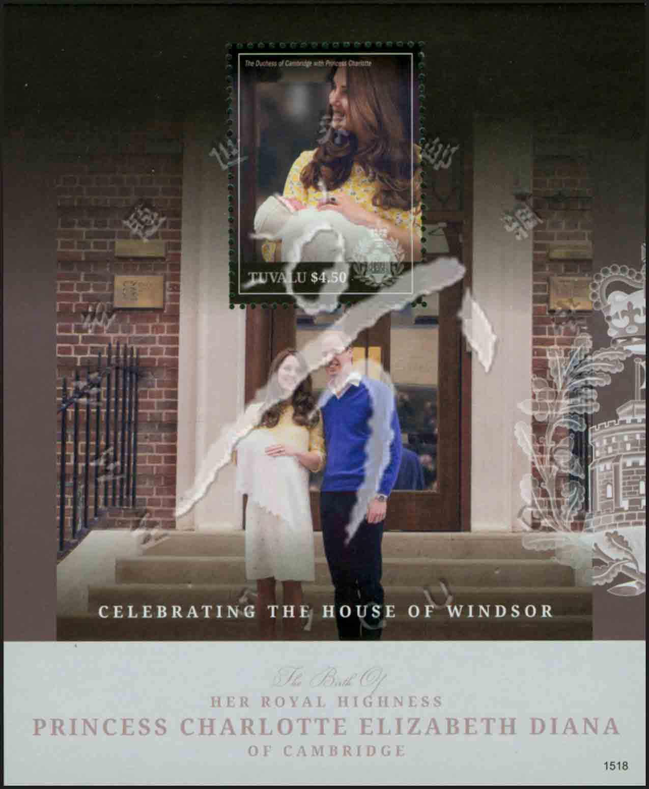 英国夏洛特公主出生,威廉王子及凯特王妃手抱小公主经典照片小型张