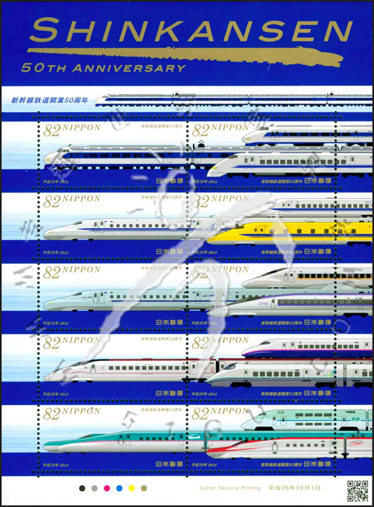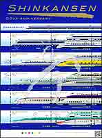 新干线铁路开业50周年,新干线列车小版张(10票)