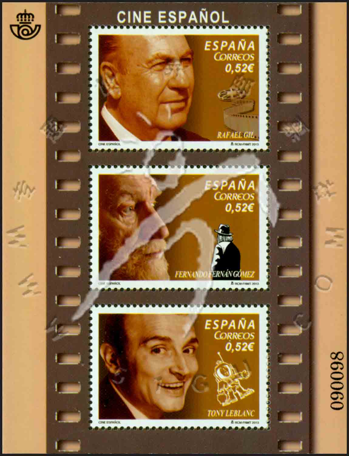 西班牙名人系列,导演拉斐尔·希尔、演员费尔南多·费尔南·戈麦斯及费尔南多·桑切斯肖像小全张(3票)