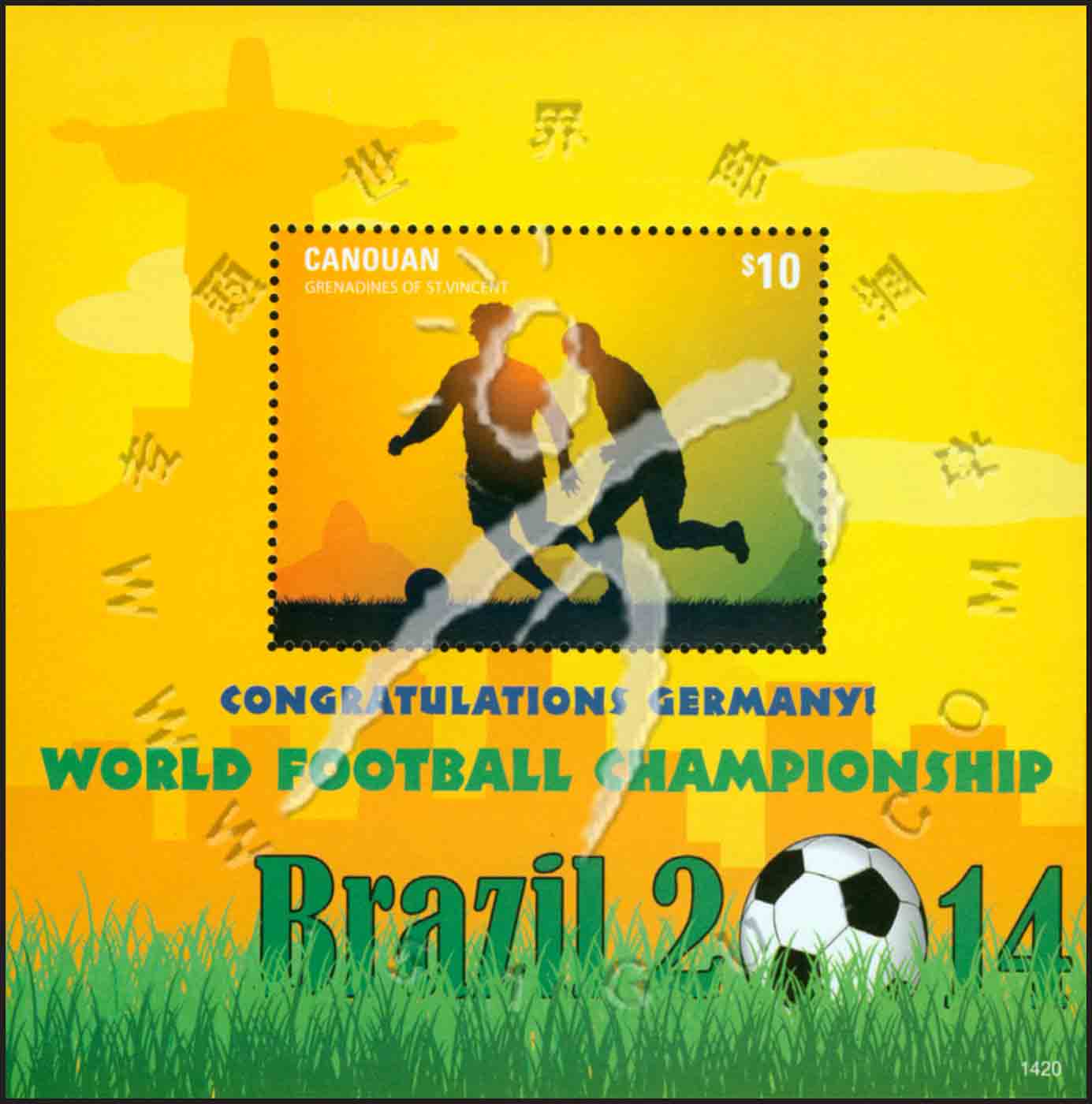 巴西2014世界杯冠军—德国队,球员踢球剪影小型张