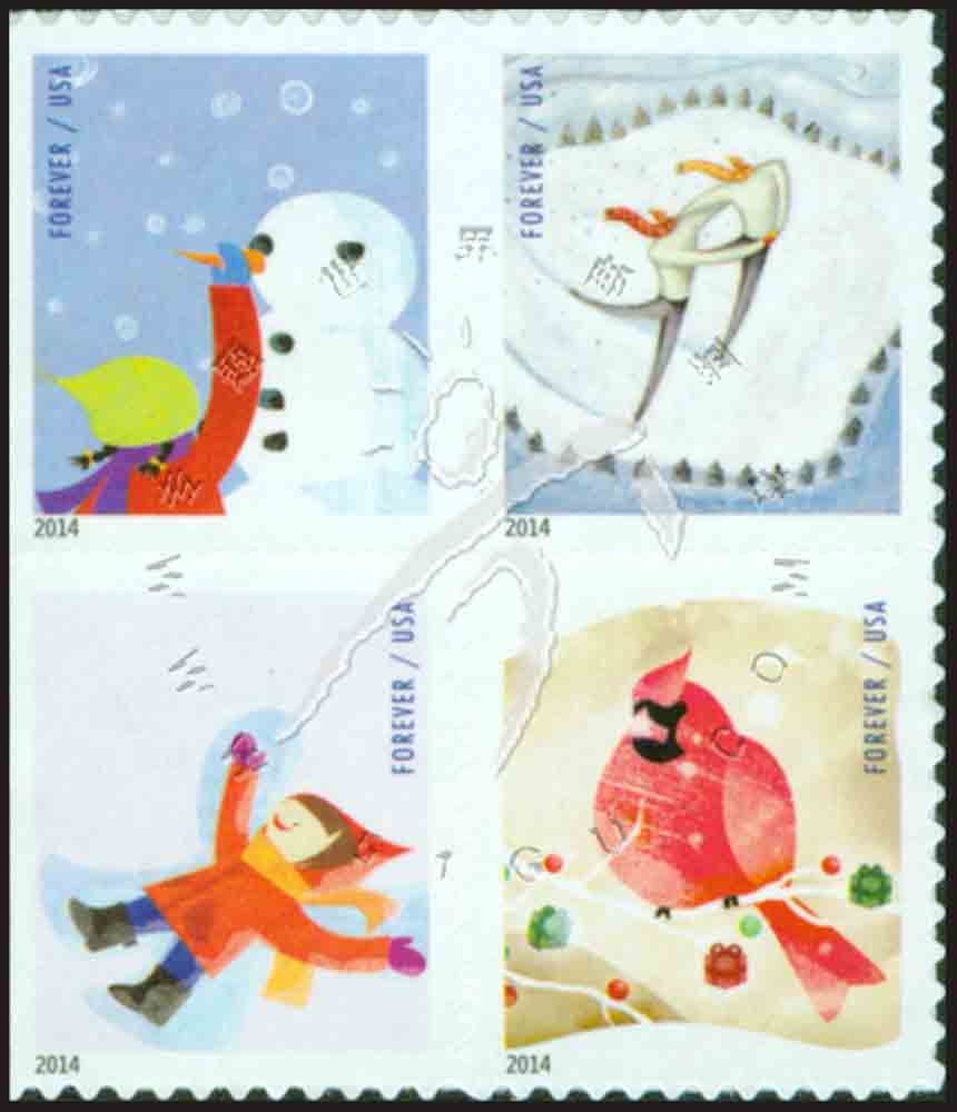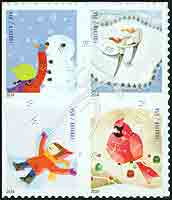 圣诞节,堆雪人、滑冰及鸟等不干胶自贴票4全