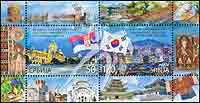 塞尔维亚与韩国建交25周年,两国国旗及城市风光小全张(2票)