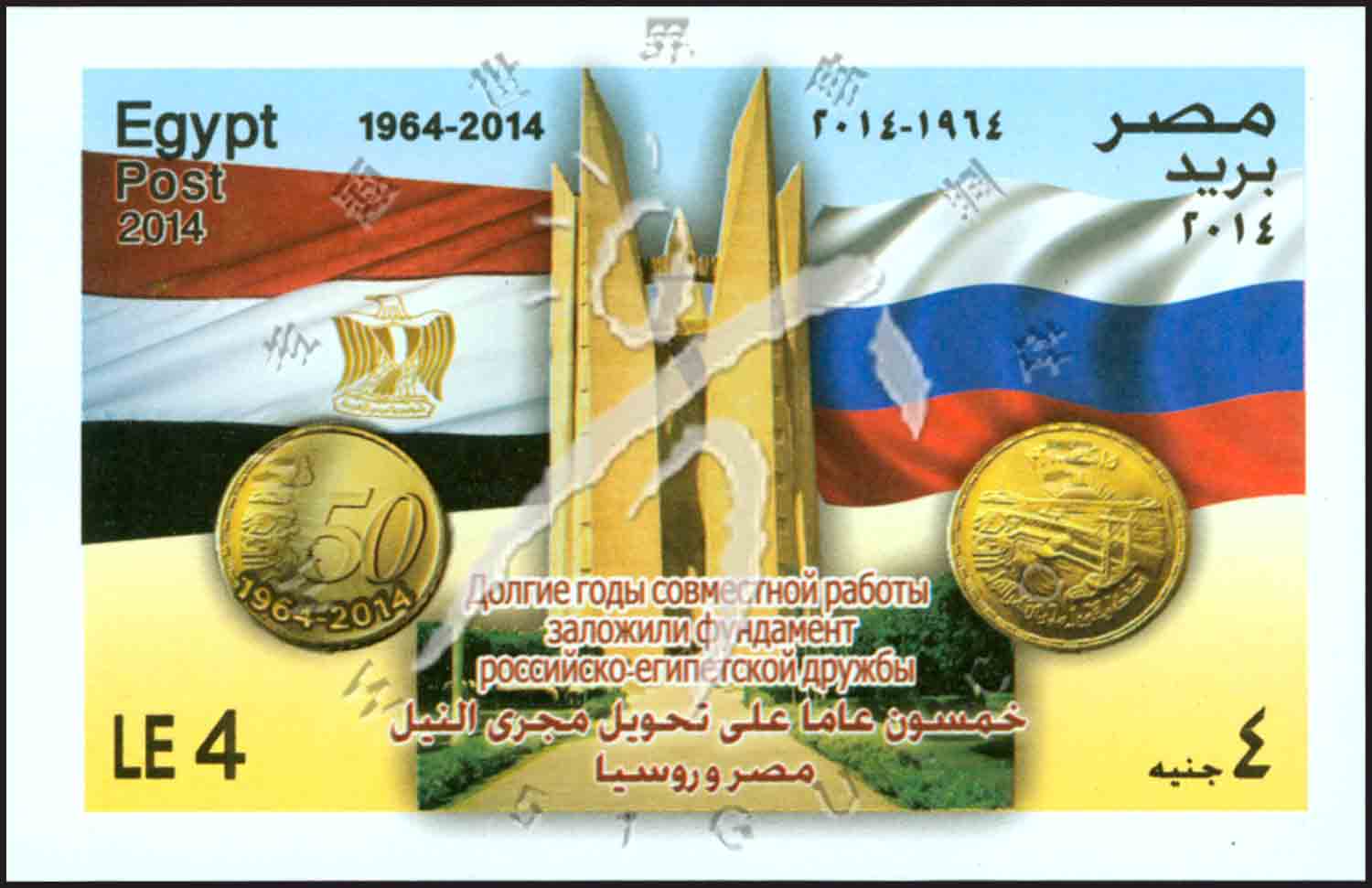 尼罗河引水工程竣工50周年,埃及、俄罗斯国旗、钱币及阿斯旺大水坝无齿小型张(我社已售缺)