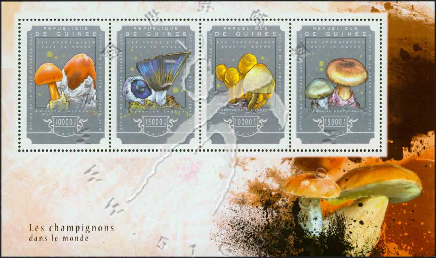 蘑菇,橙盖鹅膏菌、蓝绿乳菇、纯黄白鬼伞及毒伞小全张(4票)