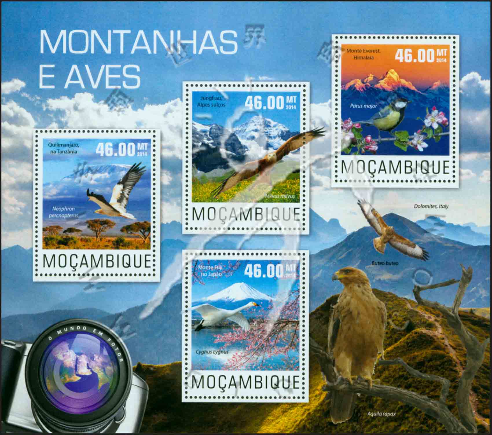 山脉,乞力马扎罗山、阿尔卑斯山、喜马拉雅山、富士山及鸟类小全张(4票)