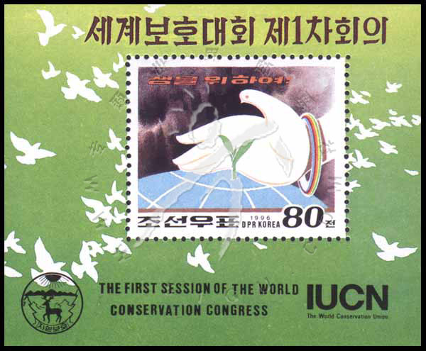 首届世界生物保护大会,呵护幼苗的手(形状似鸽子)小型张