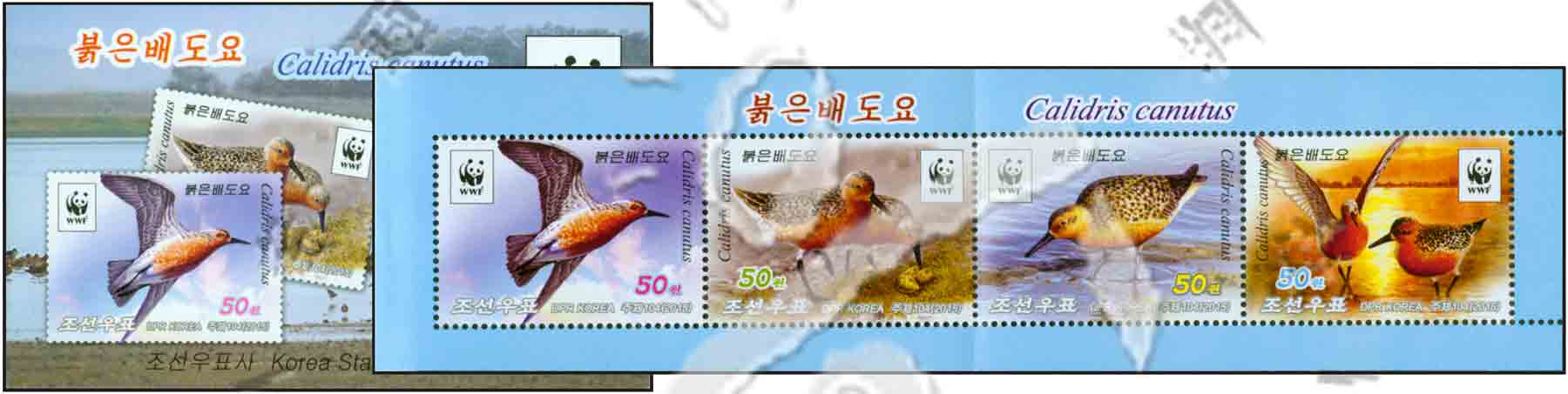 濒危物种,WWF野生动物基金会徽志及红腹滨鹬小本票(4票)