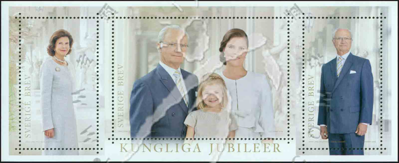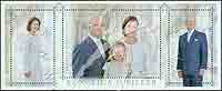 瑞典国王70岁生日及国王夫妇结婚40周年,国王夫妇经典照片及国王与两个女儿合影小全张(3票)