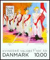丹麦妇女获得选举权百年,庆祝1915年丹麦妇女获得选举权百年而举行的大游行绘画不干胶自贴票1全