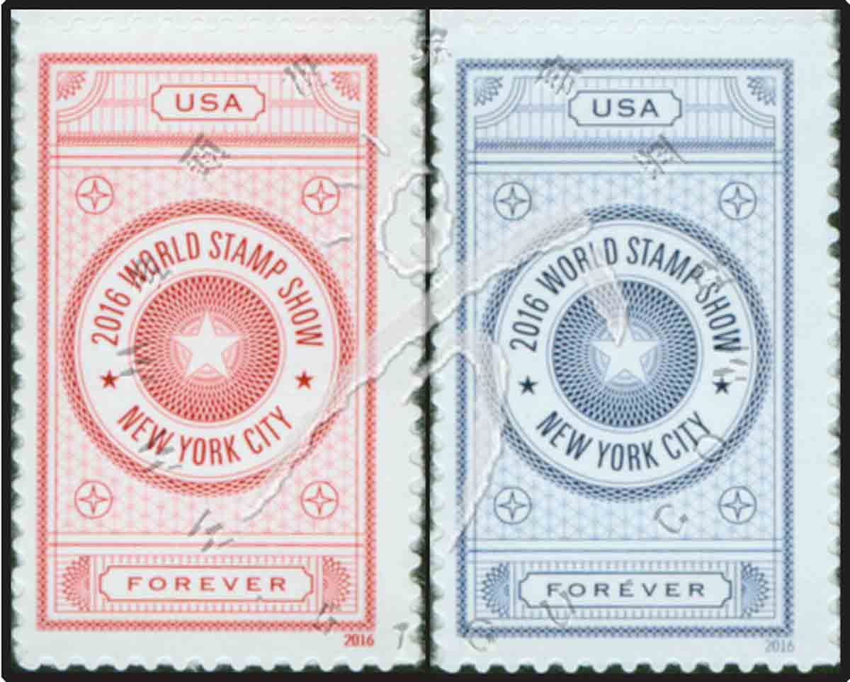 纽约2016年世界邮展,徽志不干胶自贴票2全