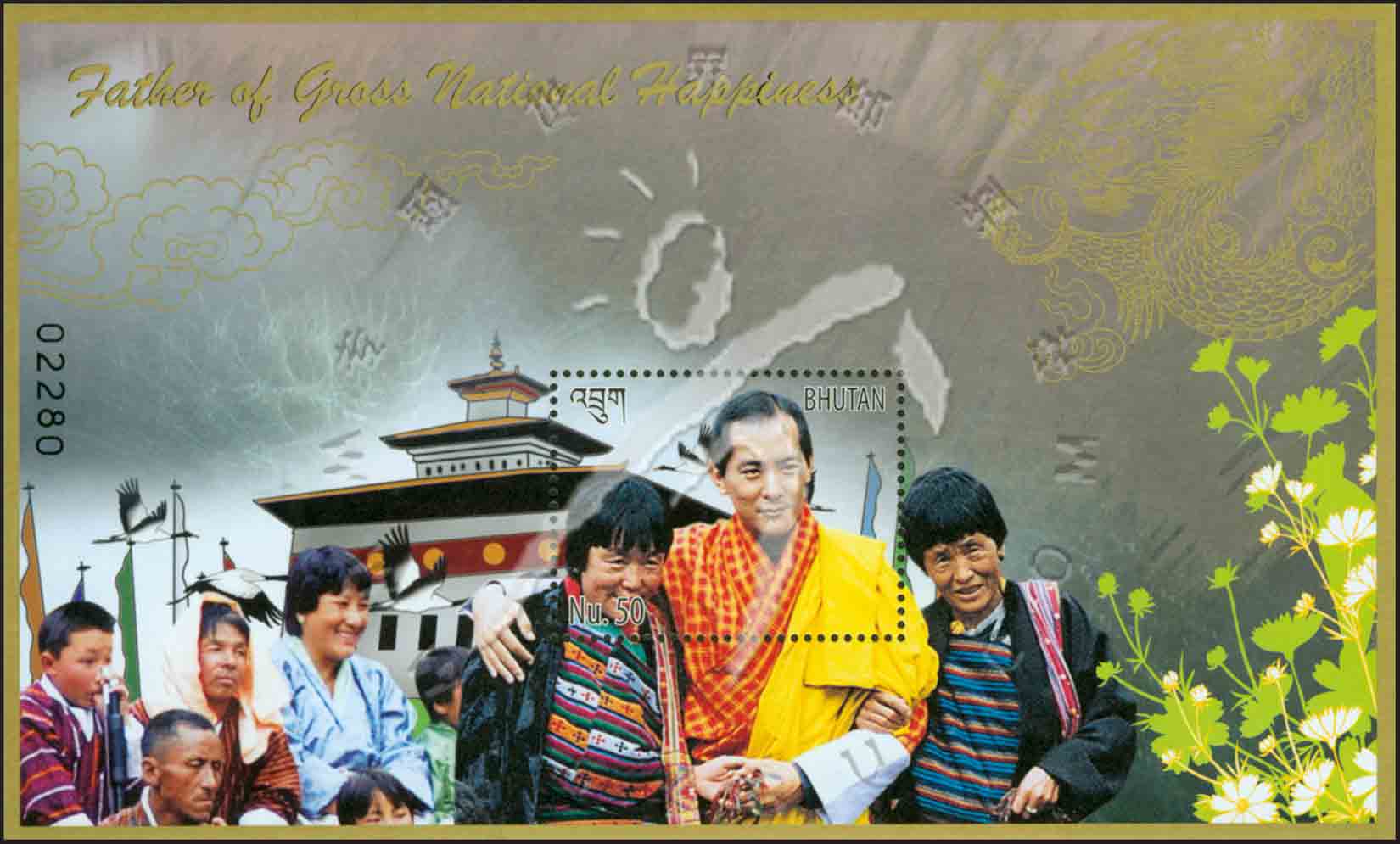 不丹国民幸福总值,吉格梅·辛格·旺楚克国王与群众合影小型张