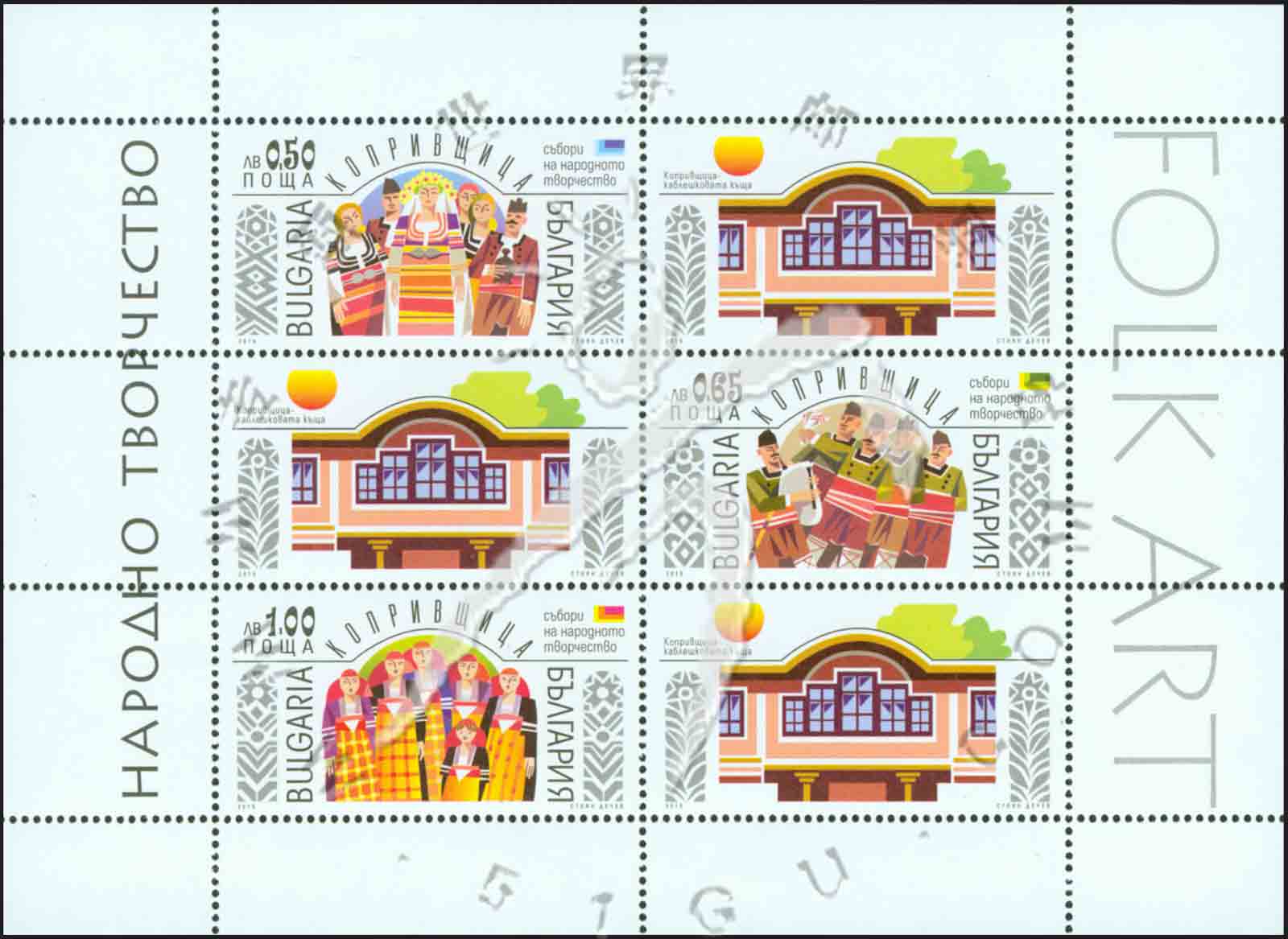 民间艺术,服饰及建筑小全张(3票+3枚附票)