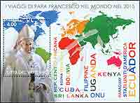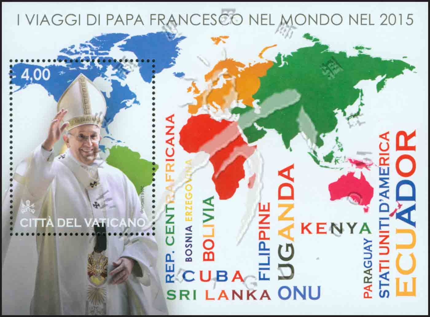 教宗方济各—2015年4使徒之旅,教宗肖像、世界地图及各个国家名称小型张